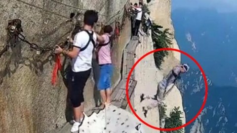 สยอง! เปิดนาทีนักท่องเที่ยวกระโดดเขาหัวซาน