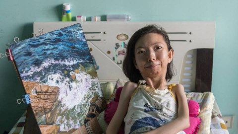 ชีวิตต้องสู้! หญิงจีนอัมพาตผู้วาดภาพขายจากบนเตียง