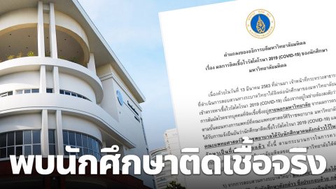 เพิ่มอีก!! ผู้ติดเชื้อนอกมหาวิทยาลัย ตามการสอบสวนทางระบาดวิทยา ผลการตรวจพบว่านักศึกษาติดเชื้อโคโรน่าจริง