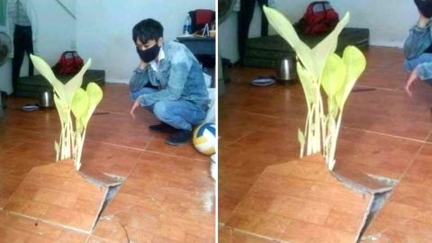 หนุ่มสุดงง!! ไม่อยู่ห้อง3-4วัน ต้นไม้โผล่ทะลุกระเบื้อง คอหวยลิ่วขอเลขห้อง