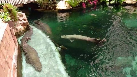ฝูงปลาช่อนอเมซอน ตัวใหญ่จริงๆ มีสีขาวเผือกด้วย