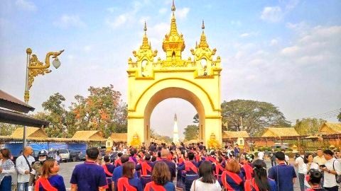 ภาพหาชมยาก!! ยอดพระธาตุพนมที่มีฉัตรทองคำ 5 ชั้นหนัก 16 กิโล บัวตูมประดับเพชรสวยงามรวม 200 เม็ด