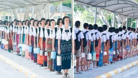 น่ารักแบบไทยๆ!! นักเรียนอนุรักษ์ความเป็นไทย นุ่งซิ่น ผ้าขาวม้าคาดเอว หิ้วปิ่นโต เดินแถวเรียงหนึ่ง