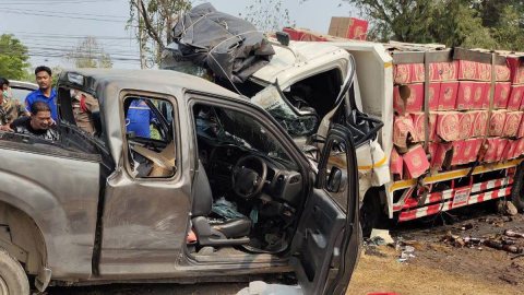 กระบะหลับใน พุ่งชนรถ 6 ล้อบรรทุกเบียร์ สามีภรรยาดับคู่ เจ็บอีก 4