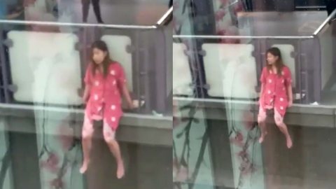 นาทีชีวิต! สาวนั่งห้อยขา ที่สถานีบีทีเอส หวิดร่วง