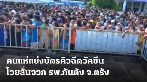 รูปชัด ไม่ใช่มุมกล้อง คนแห่แย่งบัตรคิวฉีดวัคซีน ที่ จ.ตรัง