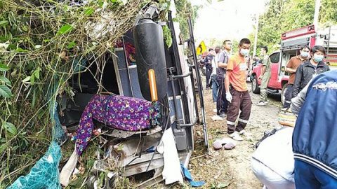 เหตุระทึก!! GPS พาผิดเส้นทาง รถบัสตกไหล่ทาง คนขับสาหัส นทท.เจ็บระนาว