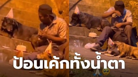ซึ้งทั่วโลก! ชายไร้บ้าน ฉลองวันเกิดให้ 2 ตูบ ป้อนเค้กทั้งน้ำตา