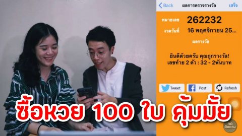 ยูทูปเบอร์ขอพิสูจน์!! คุ้มไหม ถ้าซื้อหวย 100 ใบ แบบ 1 เล่ม มาดูว่าจะถูกกี่ใบ