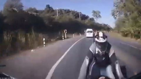 ชั่วพริบตา ดับสยอง!! หนุ่มบิ๊กไบค์ซิ่งข้ามเลน ประสานงารถตู้อย่างจัง