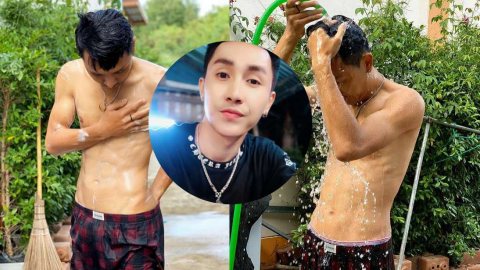 โดนใจแม่ๆ!! ผจก.ส่วนตัวโพสต์รูป “ตรี”นุ่งกางเกงลายสก๊อตแดงดำตัวเดียว อาบน้ำจากสายยาง