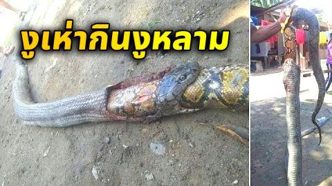เผยเรื่องราวชวนตะลึง ชาวบ้าน พากันฮือฮา หลังเจอภาพเหตุการณ์งูเห่ากินงูหลาม
