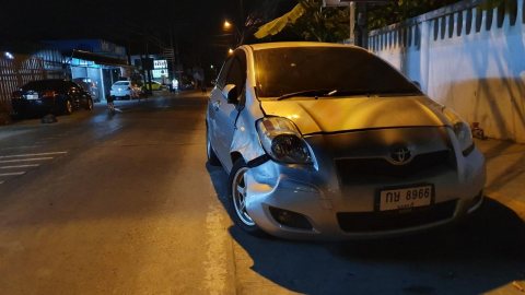 ชิ่งหนี (ชมคลิป) สาวร้องลั่น จอดรถริมถนน ถูกเฉี่ยวชนกระโปรงหน้าพังยับ รีบขับหนี