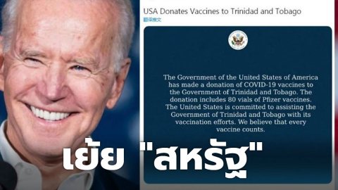 "สื่อจีน" เย้ย "สหรัฐ" คุยเขื่องประกาศแจกวัคซีนทั่วโลก แต่ส่งให้ "ตรินิแดดและโตเบโก" แค่ 80 ขวด