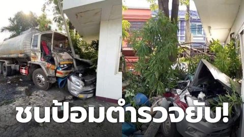 รถเบรคแตก ชนป้อมตำรวจ..ตำรวจเผ่นกระเจิง..ชนรถตำรวจพังยับ