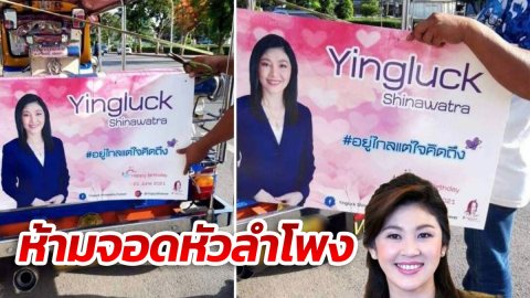 กลัวป้ายวันเกิด! ตร.ขอตุ๊กตุ๊ก ถอดรูปอวยพร ‘ยิ่งลักษณ์’ ห้ามจอดหัวลำโพง