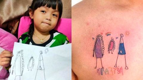 ลูกวาดรูปครอบครัวครั้งแรก กลัวภาพจะหาย ไปสักติดตัวซะเลย
