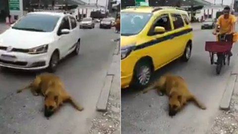 ชาวเน็ตดูคลิปด้วยใจระทึก "หมาไม่สนโลก" นอนบนถนน รถเกือบชนตายหลายคัน
