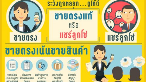 แยกแยะกันให้ออก จะได้ไม่โดนหลอกเป็นเหยื่อแชร์ลูกโซ่ "ธุรกิจขายตรง เน้นขายสินค้า แชร์ลูกโซ่ เน้นระดมทุน"