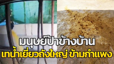 สาวสุดทน! มนุษย์ป้าข้างบ้าน เทน้ำเยี่ยวถังใหญ่ ข้ามกำแพง