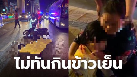 ไม่ทันกินข้าวเย็น! พ่อพาลูก 10 ขวบ ซ้อนท้าย ไปซื้ออะไหล่ซ่อมหม้อหุงข้าว พลาดถูกรถบรรทุกทับคาที่