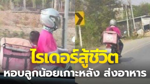 ไรเดอร์สู้ชีวิต หอบลูกน้อยเกาะหลัง ส่งอาหาร