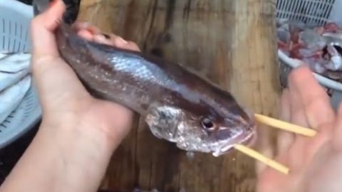 (คลิป) สุดยอด Trick! เมื่อเอาไม้ 2 อันสอดทางปากปลาแล้วหมุน สิ่งที่ได้ออกมามันเกินคาดจริงๆ?