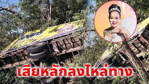 รถขนชุดทีมงาน นกน้อย อุไรพร "เสียงอีสาน" เสียหลักลงไหล่ทางเหตุคนขับหลับใน