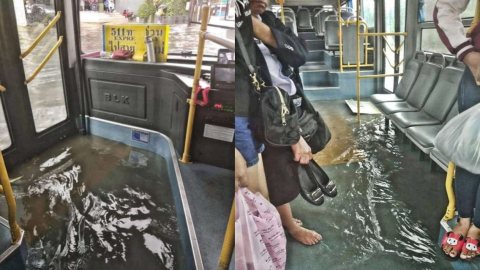 ตกหนักน้ำรอระบาย!! สมุทรปราการ ฝนถล่ม-น้ำท่วมหนัก ทะลักเข้ารถเมล์