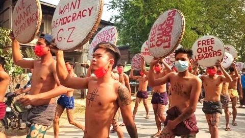แอบแซ่บ!! หนุ่มบ้านๆ ชาวพม่าไม่ทน ออกมาต้าน รัฐประหาร