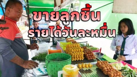 หนุ่มใหญ่ เปิดร้านลูกชิ้นทอดยืนกิน รายได้วันละ 1 หมื่น