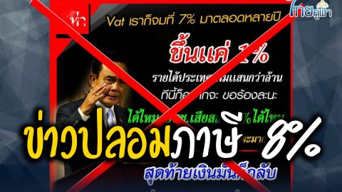 เตือนคนไทย!! อย่าเชื่อ อย่าแชร์!! ข่าวปลอม “รัฐขอขึ้น VAT 8%”