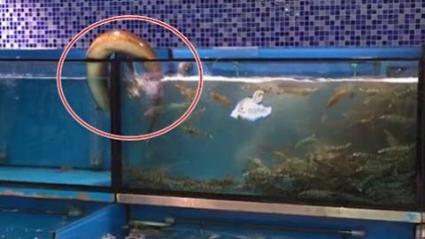 (คลิป) ปลาไหลสมชื่อ! แอบเลื้อยเขมือบกุ้งตู้ข้างๆ ก่อนเลื้อยกลับตู้ตัวเอง สุดเนียน