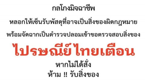 กลโกงมิฉาชีพ หลอกเซ็นรับพัสดุที่อาจเป็นของผิดกฎหมายได้