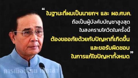 “ประยุทธ์” ชี้ ผมในฐานะผู้บังคับบัญชาสูงสุด ในสงครามโควิดฯ ครั้งนี้ ผมต้องขออภัยด้วย และ ขอรับผิดชอบในการแก้ไขปัญหาทั้งหมด