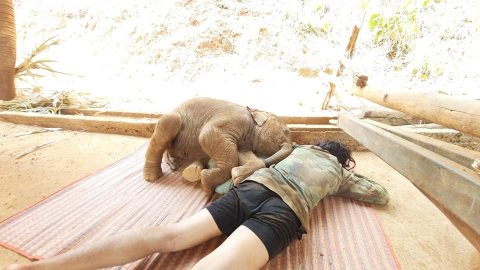 น้องช้างสุดน่ารัก ต้องให้นอนกล่อมถึงจะหลับ