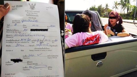 โดนจริง ปรับแล้ว 200 บาท!! ตำรวจจับห้ามนั่งหลังกระบะ