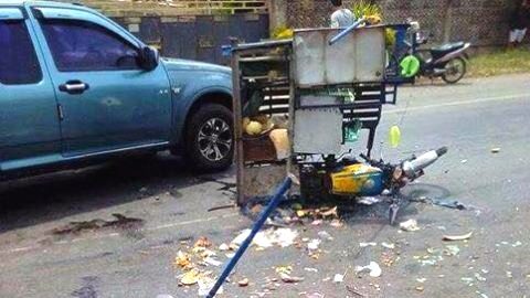 กระบะชนมอเตอไซค์พ่วงข้างพังยับ อ้างยางแตก!! ก่อนจำนนด้วยคลิปหลักฐาน