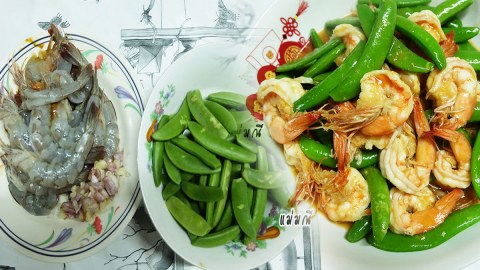 ถั่วลันเตาผัดกุ้ง ทำเองได้ง่ายนิดเดียว