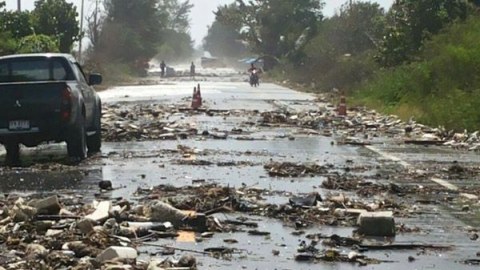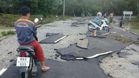 น้ำลดตอผุด! แชร์ว่อน ถนนลาดยางพังยับ! หลังน้ำท่วมใต้ลด