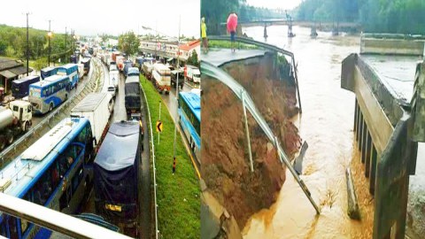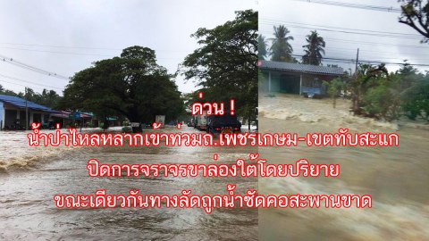 ด่วน ! น้ำป่าไหลหลากเข้าท่วมถ.เพชรเกษม-เขตทับสะแก ปิดการจราจรขาล่องใต้โดยปริยาย ขณะเดียวกันทางลัดถูกน้ำซัดคอสะพานขาด