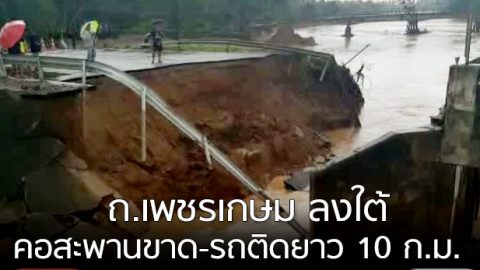 แขวงทางหลวงประจวบฯ ประกาศปิดการจราจรบน ถ.เพชรเกษม อ.บางสะพาน ทั้งขาขึ้นและขาล่อง หลังสะพานขาด