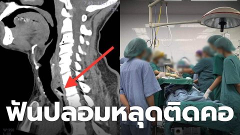 อุทาหรณ์เตือนระวัง ! ฟันปลอมหลวมหลุดติดคอ ต้องระดมหมอ 5 คน ส่องกล้องดึงออกได้อย่างปลอดภัย