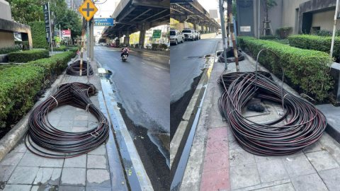 เจ้าหน้าที่ไปไหน ทิ้งสายไฟไว้แบบนี้เลย นี่หรือย่านคอนโดหรู