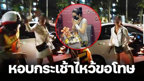 สาวเมากร่าง รองเท้าตบตำรวจ หอบกระเช้าขอโทษแล้ว เผย ขอโอกาสแก้ตัว