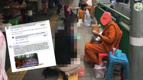 วิจารณ์สนั่น!! เมื่อเพจดังโพสต์ภาพพระนั่งบิณฑบาตเรียงรายบนฟุตบาท รอญาติโยมมาทำบุญตักบาตร