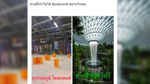 ชาวเน็ตแห่แชร์ภาพสนามบินสุวรรณภูมิตั้งถังรองน้ำที่รั่วกระจัดกระจายอยู่ที่พื้น