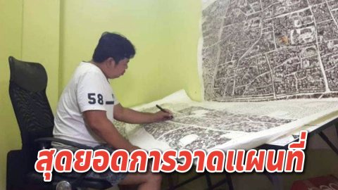 ละเอียดยิบ!! สุดยอดการวาดแผนที่คูเมืองเชียงใหม่ใส่กระดาษเยื่อไผ่เก็บทุกรายเอียด