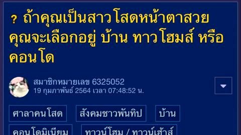 ถ้าคุณเป็นสาวโสดหน้าตาสวย คุณจะเลือกอยู่ บ้าน ทาวโฮมส์ หรือ คอนโด?