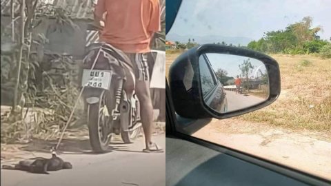 หนุ่มใจเหี้ยม จับแมวมัดท้ายมอเตอร์ไซค์ ลากไปทั้งตัว